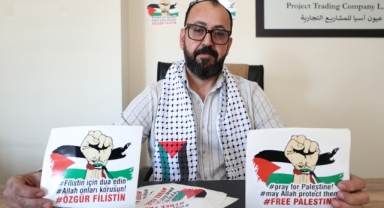 "Özgür Filistin" temalı çıkartmalar ile İsrail işgalini anlatıyor