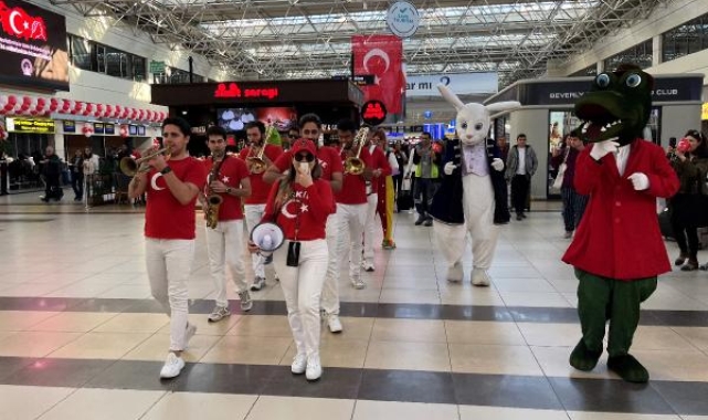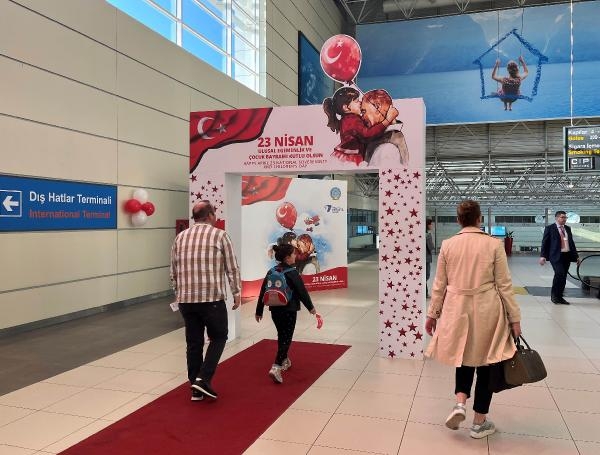 Antalya Havalimanı giden ve gelen yolcu salonları başta olmak üzere tüm terminaller Atatürk posterleri, Türk bayrakları ve kırmızı beyaz balonlarla süslendi. Terminalin en yoğun saatlerinde bando, maskotlar ve balonbaz gösterisiyle başlayan 23 Nisan kutlamaları her yaştan misafirin geniş katılımıyla coşkuyla kutlandı.