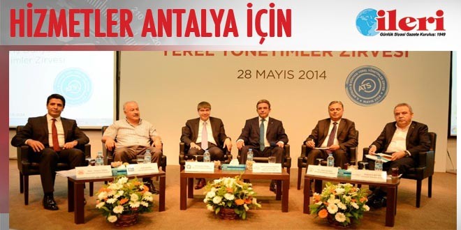 Antalya Ticaret ve Sanayi Odası (ATSO) tarafından ikincisi düzenlenen "Antalya İş Dünyası Yerel Yönetimler Zirvesi", ATSO Toplantı Salonu'nda yapıldı. Belediye başkanlarının projelerini anlattıkları toplantıya Antalya Büyükşehir Belediye Başkanı Menderes Türel, Konyaaltı Belediye Başkanı Muhittin Böcek, Muratpaşa Belediye Başkanı Ümit Uysal ve Döşemealtı Belediye Başkanı Turgay Genç ve Aksu Belediye Başkanı Halil Şahin katıldı.