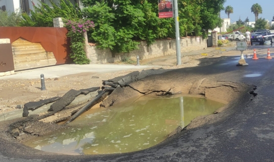 Yahşi Mahallesi Oyder Caddesi'nde isale hattındaki patlamayla asfalt yarıldı, yolda göçük oluştu, caddedeki bir restoranı su bastı.