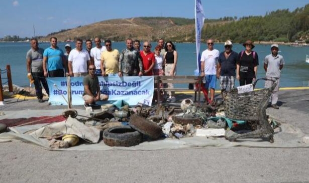 Muğla'nın Bodrum ilçesinin Ortakent ve Güvercinlik mahallelerinde yapılan deniz dibi temizliğinde toplam 664 kilogram katı atık toplandı.