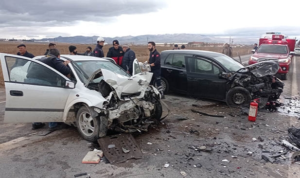 Afyonkarahisar'ın Bolvadin ilçesinde iki otomobilin çarpışması sonucu karı koca hayatını kaybetti, 3 kişi yaralandı.