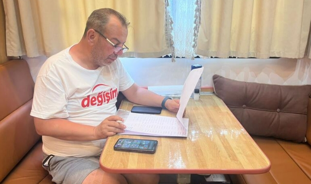 Molalarda karavanındaki çalışma masasında belediye ile ilgili çalışmalarını da sürdüren Tanju Özcan, "Seçim kaybedildikten sonra demokrat olduğunu iddia eden her onurlu insan gibi Cumhuriyet Halk Partisi Genel Başkanı'nın başarısızlığı üstlenerek, istifa etmesini bekledim. Ancak istifa etmeyince benim ihracımdan önce de ben '3 Temmuz'u bekleyin' diye bir tweet atmıştım. Yaklaşık 1 ay oldu. O tweet’i attıktan sonra da zaten o kararımın hazırlıklarına başladım. Değişim için yürüyecektim sadece. Ama sonrasında yürüyüşe başlamamdan birkaç gün önce böylesine gerekçesiz kararla disipline verilmem sonucunda adaleti de ekledim bu temaya" dedi.
