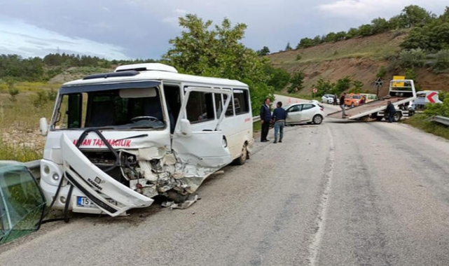 Burdur'un Karamanlı ilçesi yakınlarında işçileri taşıyan minibüs ile otomobilin çarpıştığı kazada 13 kişi yaralandı.