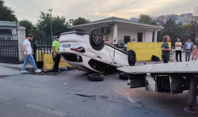 Kağıthane'de iddiaya göre kırımızı ışıkta geçen otomobil, önce otomobile çarptı ardından da beton bariyerlere çarparak devrildi. Otomobilde bulunan 4 kişi kazadan yara almadan kurtuldu.