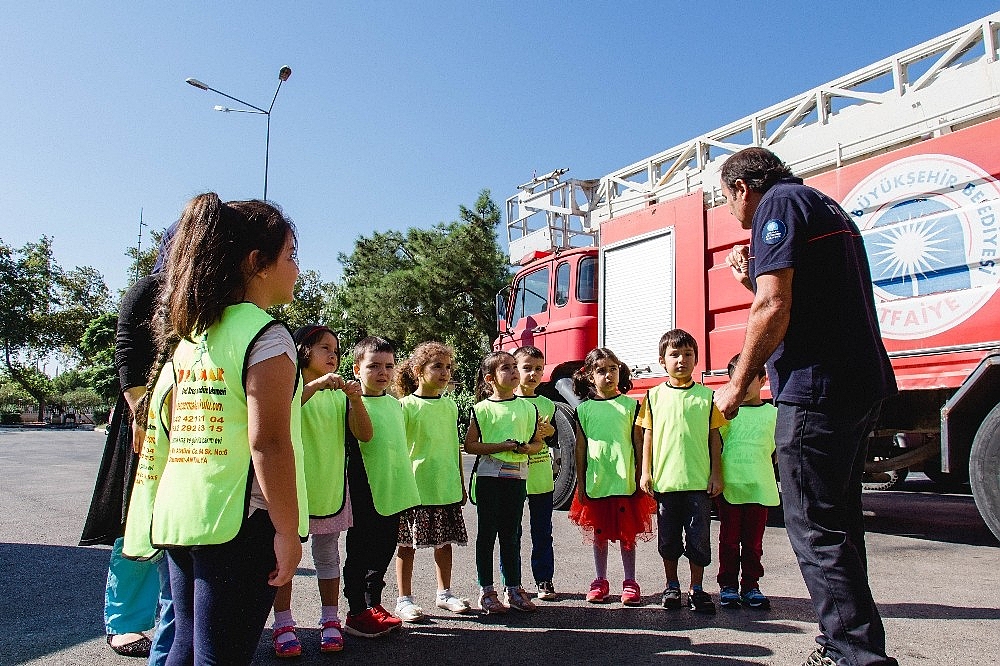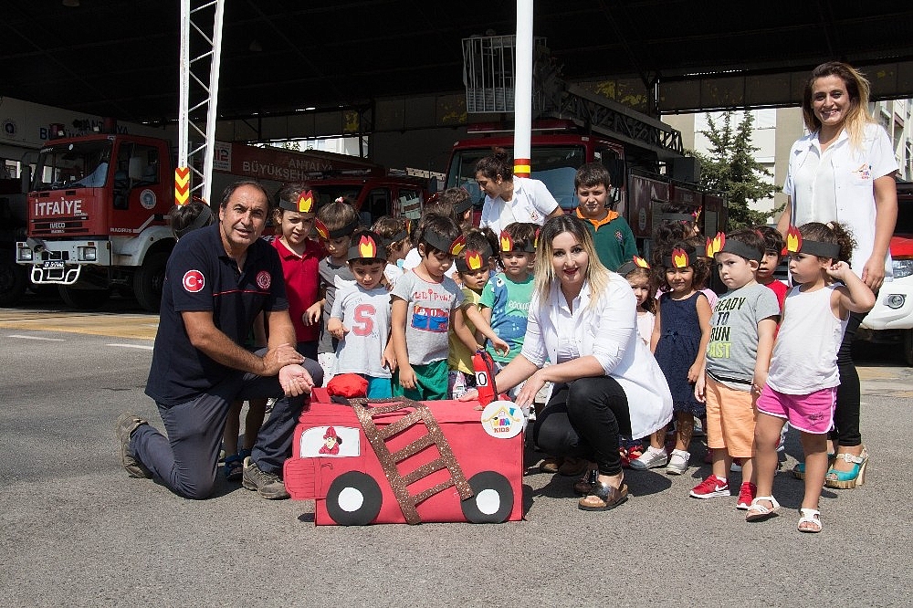 Antalya Büyükşehir Belediye İtfaiyesi minik öğrencileri ağırladı. İtfaiye merkezinde pratik ve teorik eğitim alan minik öğrenciler itfaiye aracı ile tur attı. Öğrenciler siren sesini duyunca heyecanlı anlar yaşadı.