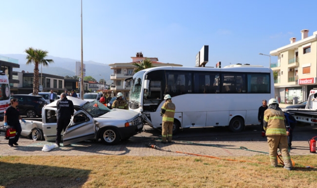Mithatpaşa Mahallesi 120. Sokak'ta Ege Ordu Komutanlığında görev yapan asker ve sivil memurların bulunduğu servis midibüsü, karşı yönden gelen H.Ö. (86) yönetimindeki 35 AD 7488 plakalı pikapla çarpıştı.