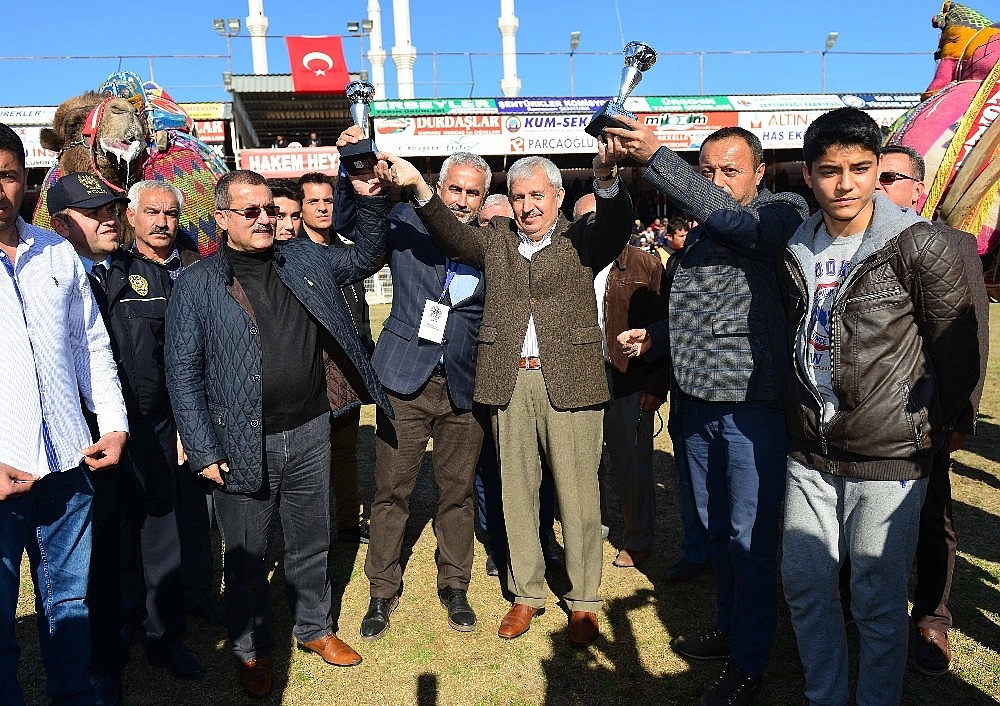 Ege ve Akdeniz Bölgesinden yaklaşık 100 devenin katıldığı güreşlerde develerin kupaları sahiplerine protokol üyeleri tarafından verildi.