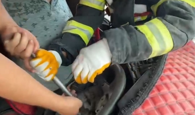Tırda sıkışan sürücü C.Y, itfaiye ekiplerin çalışmasıyla bulunduğu yerden çıkarıldı.