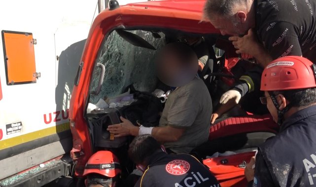 ANTALYA'nın Döşemealtı ilçesinde kamyonetin TIR'a arkadan çarptığı kazada 3 kişi yaralandı. Yaralıları kurtarmak için ekipler zamanla yarıştı.Kaza, saat 13.30 sıralarında Antalya- Burdur yolunda meydana geldi. Mahmut Can Ö. idaresindeki 31 BC 750 plakalı TIR, bulvardan dönüş yapmaya çalıştığı esnada aynı istikamete seyir halindeki Tahsin A.'nın kullandığı 07 GKS 63 plakalı tuz yüklü kamyonet arkadan hızla çarptı. TIR'ın dorsesine ok gibi saplanan kamyonette bulunan sürücü Tahsin A. ile beraberindeki Selçuk S. kabinde sıkıştı. Kazayı gören diğer sürücülerin ihbarı üzerine olay yerine çok sayıda itfaiye ve sağlık ekibi sevk edildi. Sıkışan sürücü ve yolcuyu kurtarmak için yoğun çaba harcayan itfaiye ekipleri zamanla yarıştı. Uzun uğraşlar sonucu kamyonetteki yaralılar kurtarılarak ambulanslarla hastanelere sevk edildi. TIR sürücüsü Mahmut Can Ö. de tedbir amaçlı hastaneye götürüldü. Kaza nedeniyle Antalya- Burdur yolunda trafik bir süre kontrollü olarak tek şeritten sağlandı.