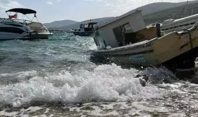MUĞLA'nın Bodrum ilçesinde etkili olan fırtına nedeniyle karaya oturan 3 tekneden 2'si parçalandı. Yetkililer, balıkçılara denize açılmayın uyarısı yaptı.
