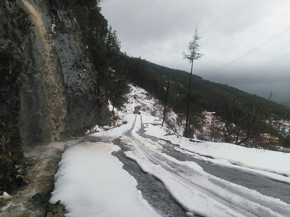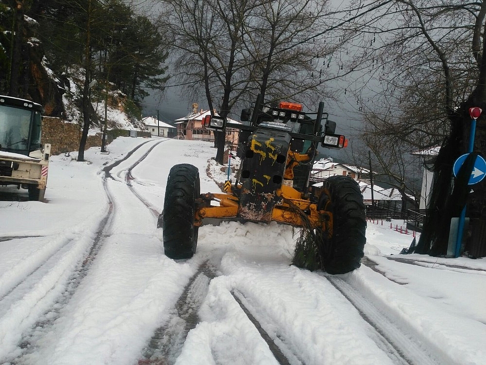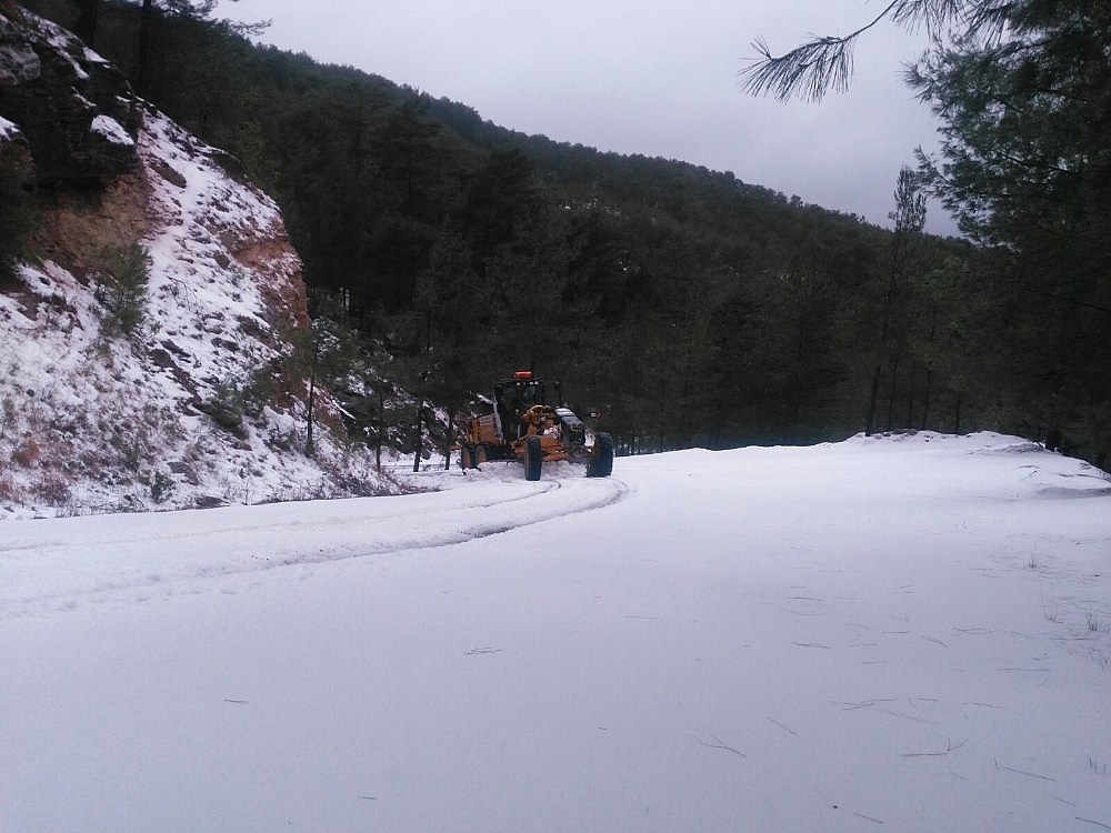 Antalya'nın Alanya ilçesinin yüksek kesimlerine yağan kar nedeniyle kapanan yollar Büyükşehir Belediyesi ekipleri tarafından açıldı.