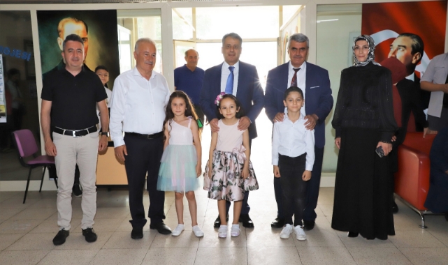 Celal Sönmez İlkokulunda düzenlenen karne dağıtım törenine Kaymakam Ahmet Hikmet Şahin ve Belediye Başkanı Halil Şahin katıldı.