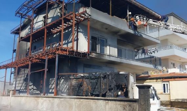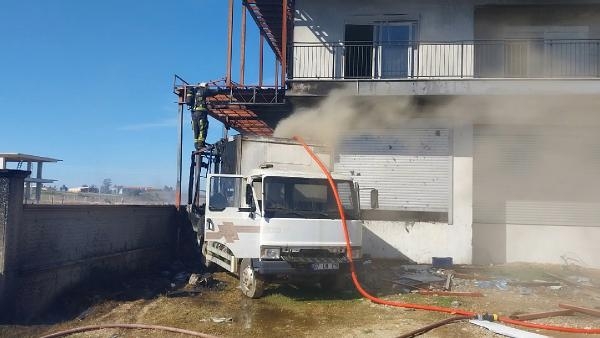 Olay,dün saat 14.00 sıralarında Hatipler Mahallesi Yenimahalle mevkisinde yeni tamamlanmış 2 katlı binada meydana geldi. Bina girişinde kaynak işlemi yapıldığı sırada sıçrayan kıvılcım nedeniyle manava ait plastik kasalar alev aldı. Kasalardan yayılan alev park halindeki kamyonete ve binaya da sıçradı. İhbar üzerine olay yerine gelen itfaiye ekipleri yangını söndürdü. Alevlerden binanın çatısındaki kaplama ve kamyonet zarar gördü.