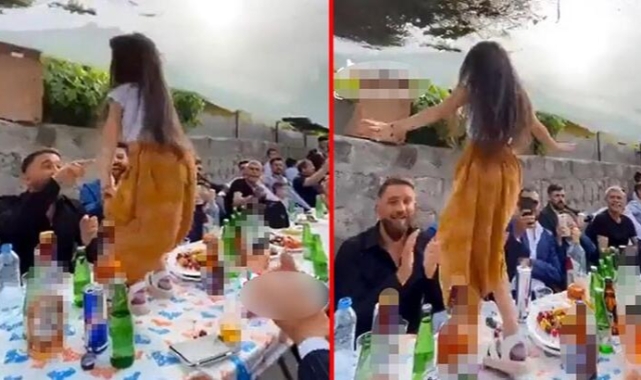 Öte yandan görüntülerde, kız çocuğunun alkol alınan masanın üzerine çıkarılarak oynatıldığı, çevredekilerinde alkışladığı görüldü.