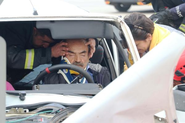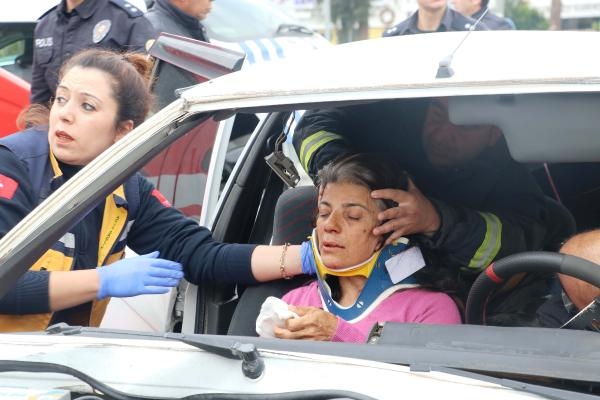 Kaza, saat 10.30 sıralarında Kepez ilçesi Dumlupınar Bulvarı'nda meydana geldi. Rahatsızlığı nedeniyle hastaneden evine gitmek üzere yola çıkan İbrahim Çot'un (60) yönetimindeki 07 AAU 08 plakalı otomobil ile Mesut Ateş'in (52) kullandığı 07 B 1985 plakalı otomobil çarpıştı. Kazada İbrahim Çot ile eşi Ayşe Çot (55) otomobilde sıkışırken, diğer sürücü Mesut Ateş de baş ve yüzünden yaralandı. İhbarla olay yerine itfaiye, polis ve sağlık ekipleri sevk edildi. Kaza yerine gelen itfaiye ekibi, sıkışan çifti kısa sürede araçtan çıkardı. İtfaiye Müdürü Hidayet Yıldırım, sedye ile ambulansa alınmak için bekleyen Ayşe Çot'un üzerine, montunu çıkartıp örttü. Yaralılar olay yerindeki ilk müdahalenin ardından tedavi için hastaneye kaldırıldı. Polis, kazayla ilgili soruşturma başlattı.