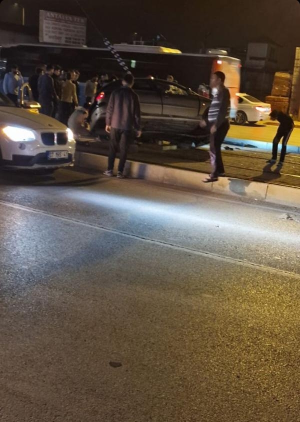 Kaza, dün saat 21.00 sıralarında Kepez ilçesi Yeşilırmak Caddesi üzerinde meydana geldi. M.F.A.'nın (18) kullandığı 07 BAM 239 plakalı otomobil, Yeşilırmak Caddesi üzerinde seyir halindeyken kontrolden çıkarak, tramvay yolundaki direk gerdirme teline çarparak takla attı. Otomobilin sol arka koltuğunda oturan Mehmet Karaymirza, açık camdan yola savruldu. Otomobilde bulunan sürücü M.F.A. ile F.G. (20), A.A. (19) ve Ü.T. (19) kazayı hafif yaralı atlattı.