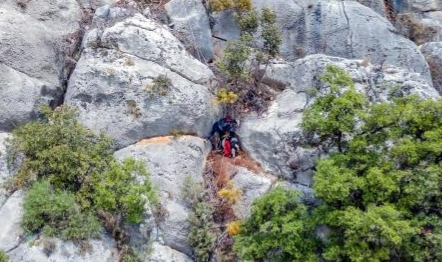 Demre Köşkerler Mahallesi Dere Mevkiinde sarp kayalıklarda mahsur kalan keçi 5 kişilik bir ekip tarafından 8 saat süren bir operasyonla kurtarıldı.