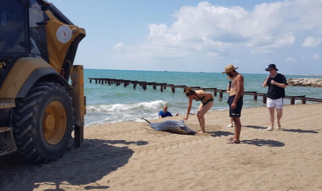 Sabah saatlerinde sahilde yürüyüş yapan vatandaşlar, kıyıya ölü yunus vurduğunu fark etti. İhbar üzerine sahile Karataş Belediyesi ekipleri geldi. Görevliler iş makinesi ile yunusu alıp, gömmek üzere götürdü.