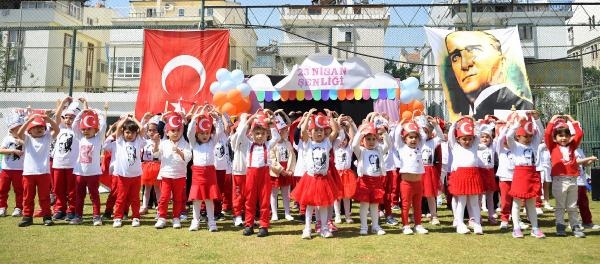 Konyaaltı Belediyesi kreşlerinde eğitim alan çocuklar, 23 Nisan coşkusunu her yıl olduğu gibi bu yıl da birbirinden renkli etkinliklerle kutladı. Türkiye Cumhuriyeti'nin kurucusu ve ilk Cumhurbaşkanı Mustafa Kemal Atatürk tarafından tüm dünya çocuklarına armağan edilen 23 Nisan Ulusal Egemenlik ve Çocuk Bayramı kutlamaları için haftalar öncesinden hazırlıklara başlayan minikler, Toros Mahallesi'nde bulunan stadyumu şenlik alanına çevirdi. Ailelerin ve mahalle sakinlerinin de alkışlarla eşlik ettiği kutlamalar, saygı duruşu ve İstiklal Marşı ile başladı.