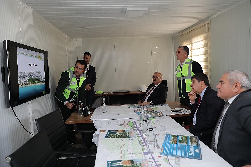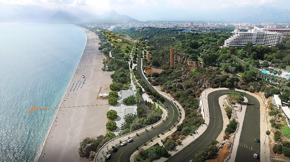 Antalya Büyükşehir Belediye Başkanı Menderes Türel, Konyaaltı Beach Park'taki şantiye merkezinde Vali Mühir Karaloğlu ve ATSO Başkanı Davut Çetin'e, Mimarlar Odası Yarışma Projesi ile elde edilen Konyaaltı Sahil Projesi ile ilgili bilgiler verdi. Türel, projenin yeşilin ve mavinin buluşması olduğunu belirterek, mevcuttaki 30 bin metrekare beton alanının, yeşil alana dönüştürüldüğünü anlattı. Proje öncesi alanda bulunan beton zemin 97 bin 468 metrekare iken, yeni proje ile 67 bin 800 metrekareye indirildiğini kaydeden Türel, mevcut ağaçların tamamının korunurken, 5 bin 234 yeni ağaç ilave edileceğini ifade etti.