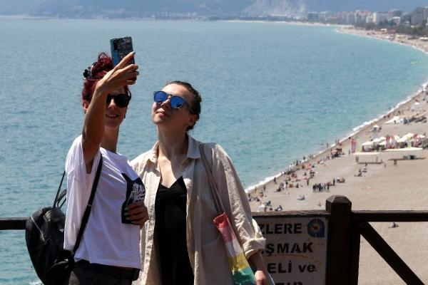 Hava sıcaklığının 22 derece, nem oranının yüzde 51 ölçüldüğü Antalya'da, Ramazan Bayramı'nın ilk günü sahil bandında yoğunluk yaşandı. Ramazan Bayramı'nın, okulların ara tatiline denk gelmesiyle birlikte şehre yerli tatilciler de geldi. Bayramı Antalya'da geçiren yerli tatilciler ve kentte yaşayanlarının yanı sıra turistler de Konyaaltı Sahili'ne akın etti. Sahile gelenlerden bazıları denize girerken, bazıları güneşlendi, bazıları da sahilin kıyı kesimindeki gölgeliklerde zaman geçirdi. Kimi de kıyı bandında bulunan banklarda oturup, yürüyüş yaptı.