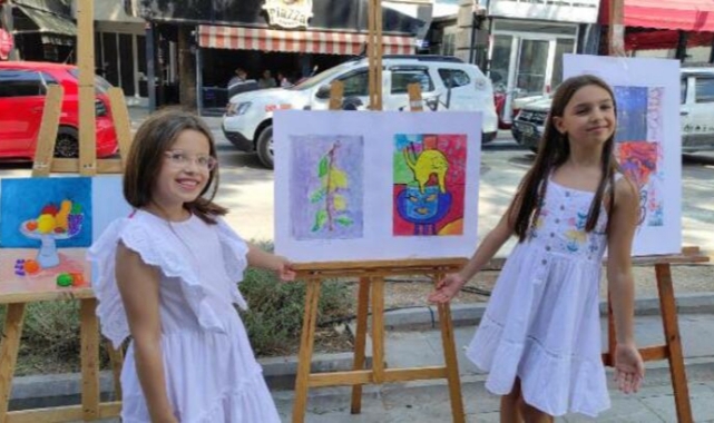 BURDUR'da 10 yaşındaki Beste Kaval ve Irmak Güleşir ilk resim sergilerini İstasyon Caddesi'nde açtı
