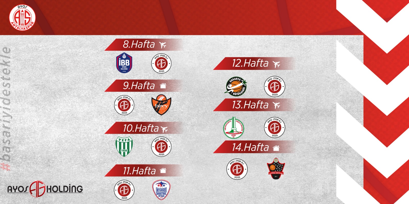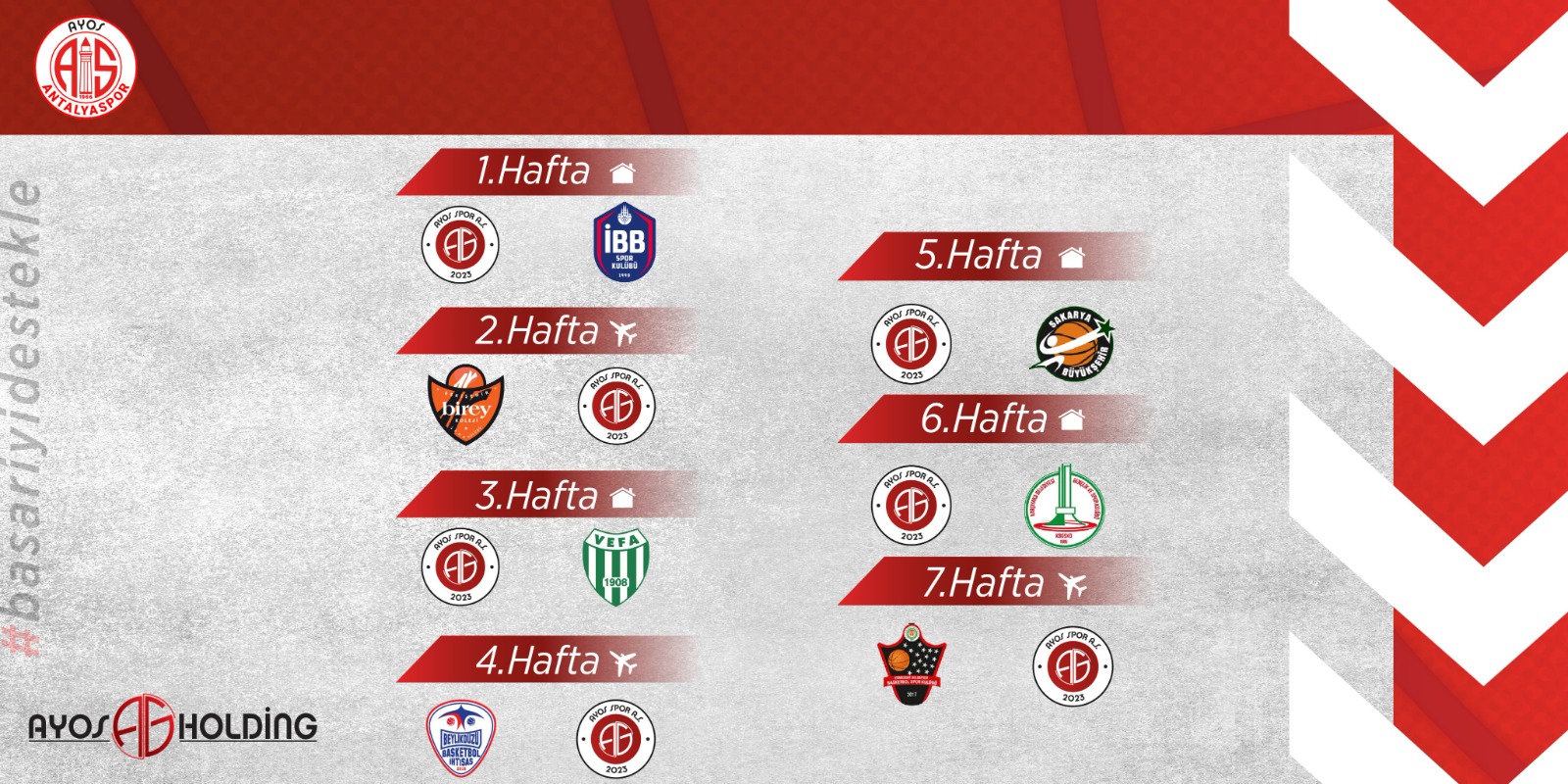 Antalya’yı temsil eden Ayos Antalyaspor, D Gurubunda boy gösterecek. Sezon sonunda ilk 2’de bitire takımlar son 16 turuna adını yazdıracak. Puan cetvelinde 3’üncü ve 6’ncı sırada yer alan takımlar play-off mücadelesi verecek. Gruplarda normal sezonu son 2 sırada tamamlayan takımlar ise play-out oynayacak. 2. Lig’de bu sezon 4 takım bir alt lige düşecek. Son 16 turu, çeyrek final ve yarı final serileri 3 maç üzerinden oynanacak. Kazanan takımlar yarı final maçlarına çıkacak. Finale çıkan iki ekip ise Basketbol 1. Ligi’ne yükselecek.