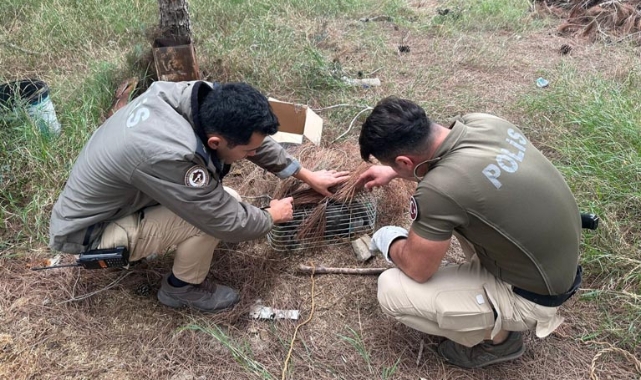 Tuzağın içinde nesli tükenme tehlikesi altındaki bayağı çakır kuşu olduğunu gören ekipler, kurtardıkları kuşu Tarsus Doğa Parkı'nda götürdü.