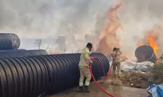 Mersin'in Silifke ilçesindeki liman şantiyesinde çıkan yangına, havadan ve karadan müdahale ediliyor.