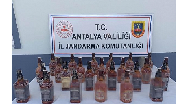 Manavgat İlçe Jandarma Komutanlığı ekipleri, Sarılar Mahallesi'nde yaşayan O.Ç.'nin Antalya'dan aldığı viskileri Manavgat'ta piyasaya süreceği ihbarı üzerine harekete geçti. JASAT ekipleriyle birlikte fiziki takip yapılan otomobil, Sarılar Mahallesi'nde durduruldu. Otomobilde yapılan aramada, sahte olduğu değerlendirilen 25 şişe viski ele geçirildi. Şüpheli O.Ç. gözaltına alındı.