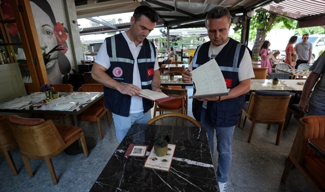 Ula İlçesi Sakin Kent Akyaka Mahallesi'nde işletmeleri denetleyen ekipler restoran ve kafelerde işletmenin giriş kapısı önünde ve masalarda menülerin olup olmadığını, menüleri ve fiyat listelerini inceledi.
