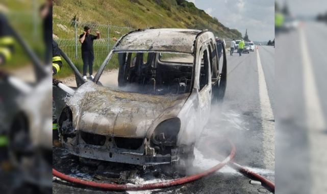 Dumanları görünce aracını emniyet şeridine çeken sürücü durumu itfaiye ekiplerine bildirdi.