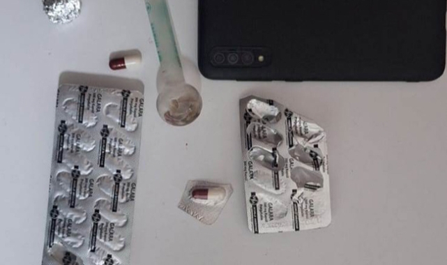 Şüphelilerden C.K'nin üzerinde bir miktar sentetik uyuşturucu ile 4 sentetik ecza hap ele geçirildi.