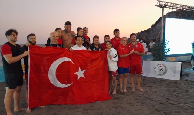 Dünya Plaj Güreşi Şampiyonası Serisi Finali "Sarıgerme 2023" organizasyonunda altın madalya kazanan milli sporcular, şampiyon olmanın mutluluğunu yaşıyor.
