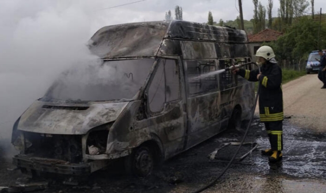 Minibüsün kullanılamaz hale geldiği yangının çıkış nedeninin belirlenmesi için çalışma başlatıldı.