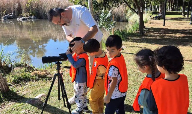 KEPEZ Belediyesi Nasreddin Hoca Kreş ve Gündüz Bakımevleri'nde öğrenim gören 5 yaş grubu çocuklar, 'Doğa Okuryazarlığı Eğitimi' kapsamında düzenlenen doğa gezisinde dürbün ve teleskoplarla kuş gözlemi yaptı. Çocuklar, bir doğa bilimcinin merakıyla çevrelerini keşfederken, doğanın her bir canlısını isim isim öğrenmenin heyecanını yaşadı.Kepez Belediyesi bünyesinde faaliyet gösteren Nasreddin Hoca Kreş ve Gündüz Bakımevleri şubelerinde öğrenim gören 5 yaş grubu çocuklara yönelik başlatılan 'Doğa Okuryazarlığı Eğitimi' kapsamında ikinci aşama tamamlandı. Biyomühendis, belgeselci ve yazar Hüseyin Çağlar İnce tarafından yürütülen doğa gözlem çalışmasında çocuklar, sınıf içinde öğrendiklerini, doğada birebir deneyimleme fırsatı buldu. Çocuklar, yakın çevrelerindeki canlı türlerini tanımlayarak doğayı yakından inceleme ve gözlemleme şansı yakaladı.KEPEZ'İN MİNİKLERİ DOĞADAÇocuklar, doğa gezisinde dürbün ve teleskoplarla kuş gözlemi yaptı. Yalıçapkını, büyük baştankara, kızılgerdan, ak kuyruksallayan, su tavuğu ve gümüş martı gibi kuş türlerini, büyük beyaz melek kelebeğini, ayrıca kızılçam, fıstık çamı, çınar ve kavak ağaçlarını yerinde gözlemlediler. Kepez Belediyesi bu projeyle, çocuklara yalnızca bilgi değil; doğaya sevgi, merak ve sorumluluk duygusu kazandırmayı hedefliyor.