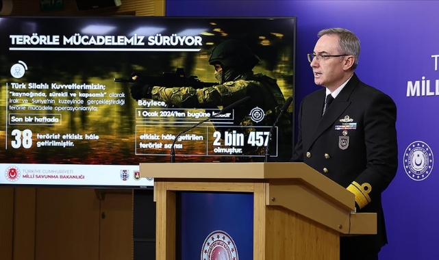 Milli Savunma Bakanlığı (MSB) Basın ve Halkla İlişkiler Müşaviri Tuğamiral Zeki Aktürk, Irak ve Suriye'nin kuzeyinde son bir haftada 38 teröristin etkisiz hale getirildiğini bildirdi.