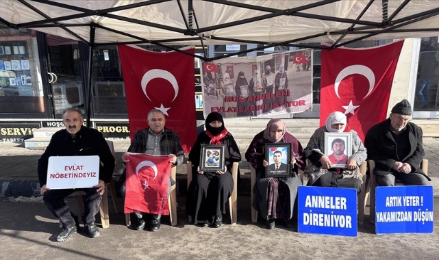 Muş'ta çocukları terör örgütü PKK tarafından kaçırılan aileler, DEM Parti İl Başkanlığı binası önündeki eylemlerini devam ettirdi.