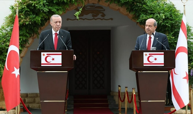 Cumhurbaşkanı Recep Tayyip Erdoğan, KKTC Cumhurbaşkanı Ersin Tatar ile ortak basın toplantısı düzenledi.