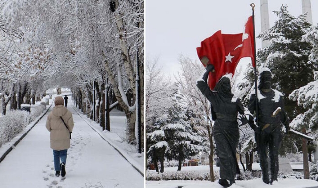 Erzurum'da, gece saatlerinde etkili olan kar yağışı, kenti beyaza bürüdü.