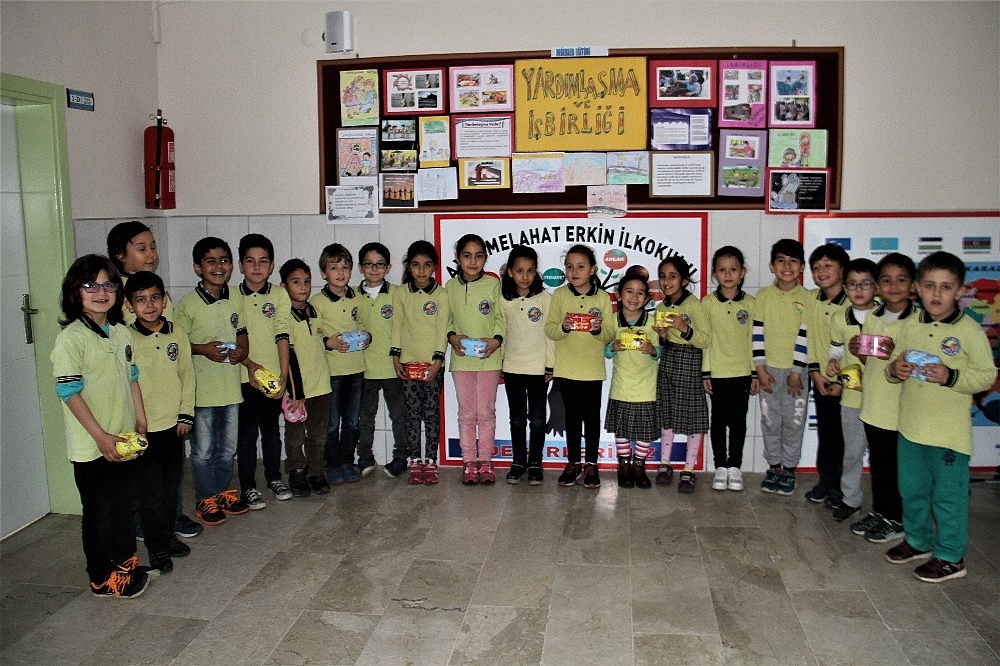 Kampanyaya destek veren 2/B öğrencisi Arda Koç, şubat ayında yardımlaşma ve işbirliği dersini işlediklerini söyledi. Koç," Haslıklarımızı biriktirerek Afrin'deki askerlerimize destek için bu paraları göndereceğiz" dedi.