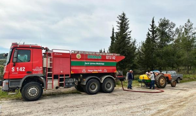 Serik Orman İşletme Müdürlüğü Gebiz İşletme Şefliği tarafından orman yangınlarını önleme çalışmaları çerçevesinde tedbir amaçlı yol kenarındaki otlar ilaçlanarak temizlendi. Çalışmalara 1'i ilaçlama olmak üzere 5 araç ve 20 personel katıldı.