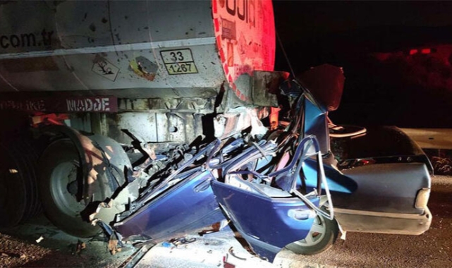 Otomobil, emniyet şeridindeki yakıt tankerine çarptı: 3 ölü