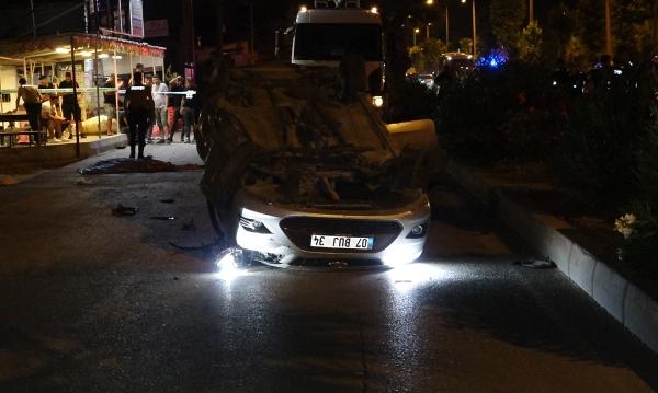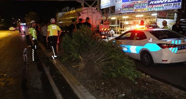 Kaza, dün saat 23.00 sıralarında, Muratpaşa ilçesi Gazi Bulvarı Yeşildere Mahallesi'nde meydana geldi. Gazi Bulvarı'ndan Serik Caddesi'ne giden Ali Dikyar'ın kullandığı 07 BUJ 34 plakalı otomobil ile aynı yönde giden Emrah Balcı yönetimindeki 63 KC 344 plakalı motosiklet çarpıştı. Kazada Balcı, motosikletten yola savrulurken, Ali Dikyar ile eşi Gizem Dikyar'ın bulunduğu otomobil ise yol kenarındaki palmiye ağaçlarını devirdikten sonra tankere çarpıp takla attı. İhbarla kaza yerine polis, sağlık ve itfaiye ekipleri sevk edildi. Polis, trafiği kontrollü sağlarken, itfaiye personeli ise otomobildeki Dikyar çiftini çıkardı. Sağlık ekipleri, yaralı çifti ambulansla Kepez Devlet Hastanesi'ne kaldırırken, Balcı'nın ise hayatını kaybettiğini belirledi. Motosikletin kaza yerinden yaklaşık 300 metre ileride durduğu görüldü. Emrah Balcı'nın cesedi, savcılık ve olay yeri inceleme ekiplerinin çalışmasının ardından otopsi yapılmak üzere Antalya Adli Tıp Kurumu'na götürüldü.