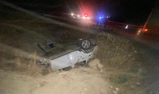 Karaman'da şarampole devrilen otomobilde aynı aileden 1'i ağır 3 kişi, yaralandı.