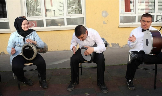 Kastamonu İhsan Ozanoğlu Özel Eğitim Meslek Okulu'nda eğitim gören otizmli, down sendromlu ve hafif zihinsel engelli öğrenciler, ritim grubu çalgıları çalmayı öğrenerek sosyalleşiyor.