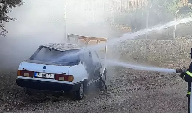 Burdur'un Bucak ilçesinde park halindeki otomobil yanarak kullanılmaz hale geldi.