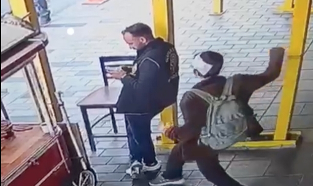 Görüntülerde, saldırgan olay yerinden kaçarken çevredeki bir zabıtanın boynundan yaralanan polise yardım ettiği görülüyor.