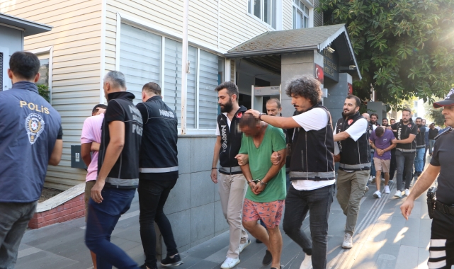 Antalya İl Emniyet Müdürlüğü'ne bağlı Narkotik Şube Müdürlüğü ekipleri ve Kemer İlçe Emniyet Müdürlüğü ekipleri, Cumhuriyet Başsavcılığı talimatlarıyla 'torbacı' olarak tabir edilen uyuşturucu satıcılarına yönelik operasyon düzenledi. Operasyon kapsamında gözaltına alınan 7 kişi dün İlçe Emniyet Müdürlüğü'ne ait Kemer Polis Merkezi Amirliği'ne getirildi. Buradaki işlemlerinin ardından bugün Kemer Devlet Hastanesi'nde sağlık muayenesinden geçirilen şüpheliler sonrasında Kemer Adliyesi'ne getirildi. Hakim karşısına çıkan şüphelilerden B.K. ve M.T. tutuklanırken, 5 kişi ise adli kontrolle serbest bırakıldı.